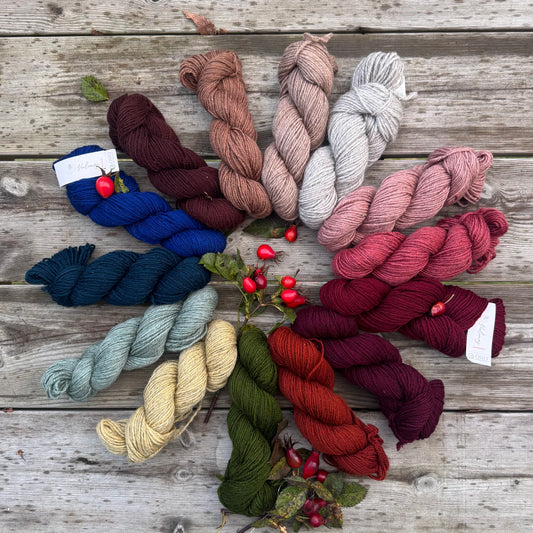 Hvert nøste er spunnet på vårt lille spinneri i Oslo, med ull fra norske sauer og et øye for kvalitet, bærekraft og nordisk fargeestetikk. Vi jobber tett med norske bønder og bruker raser som Villsau, Blæset og Norsk pelssau – fiber med karakter og historie.