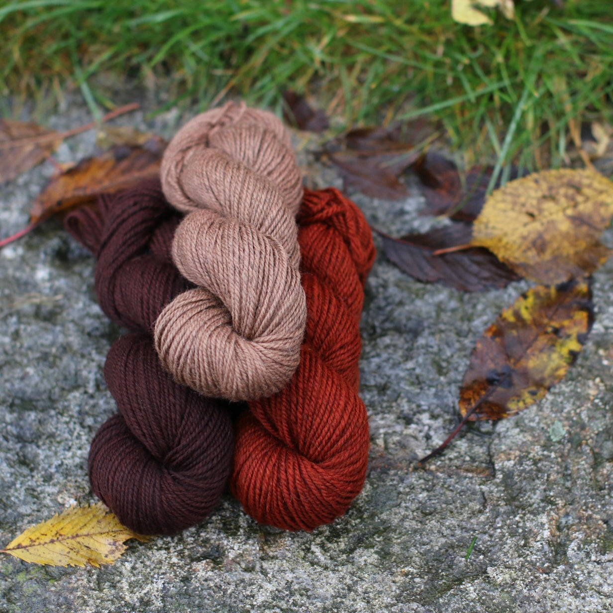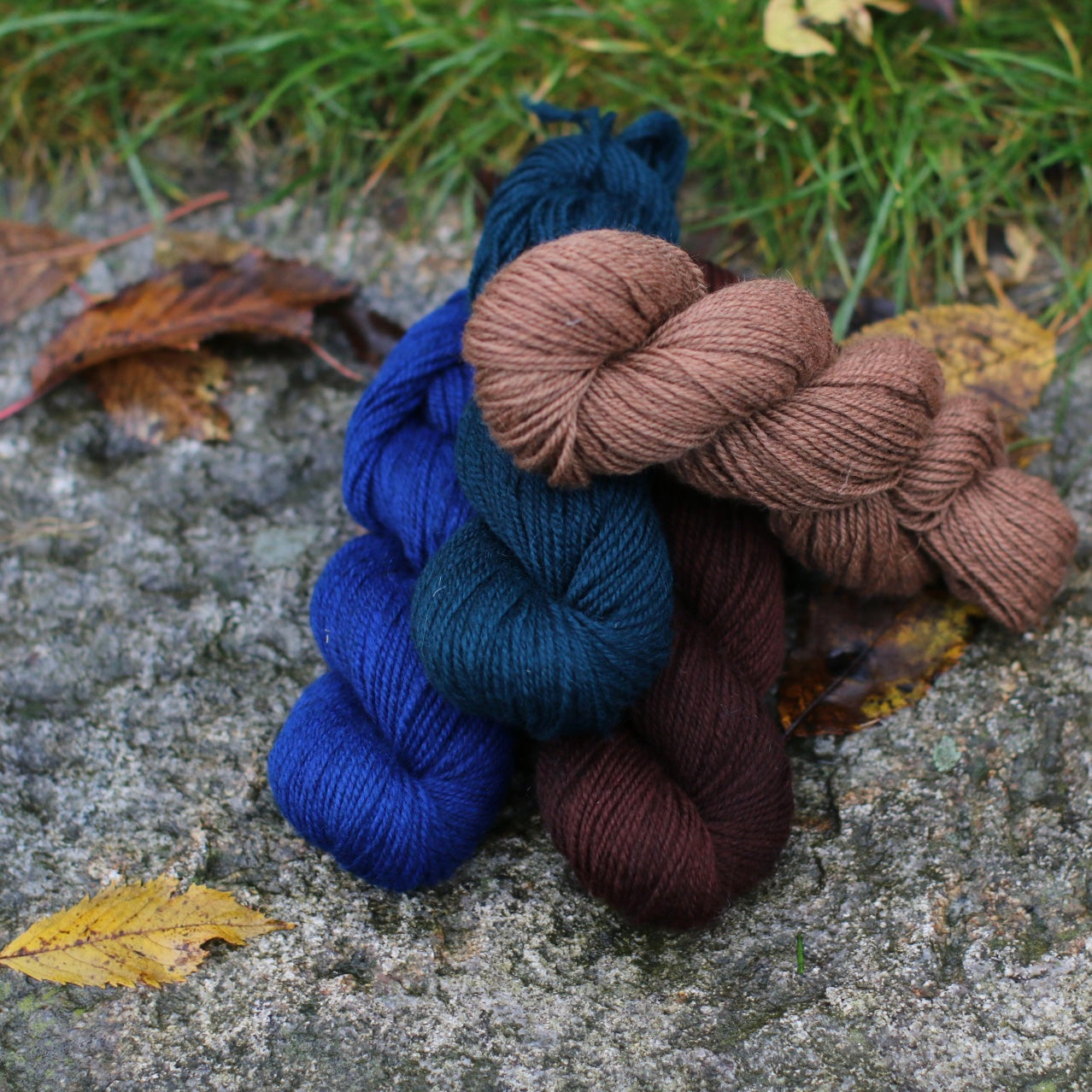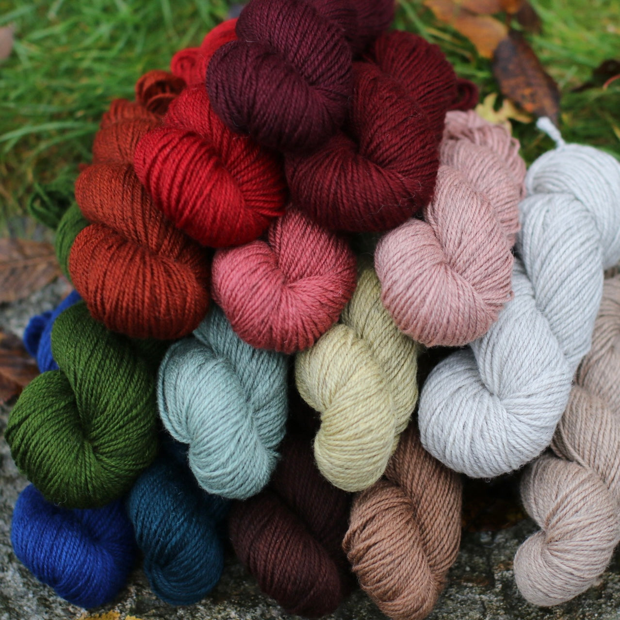 Vær oppmerksom på at de mørkeste fargene kan blø litt, så skyll de gjerne i kaldt vann før du strikker de med lyse farger.